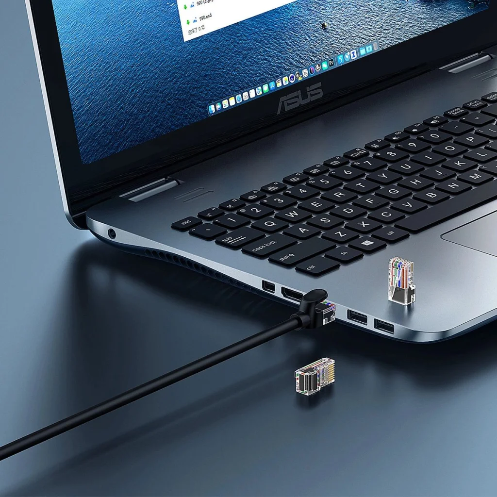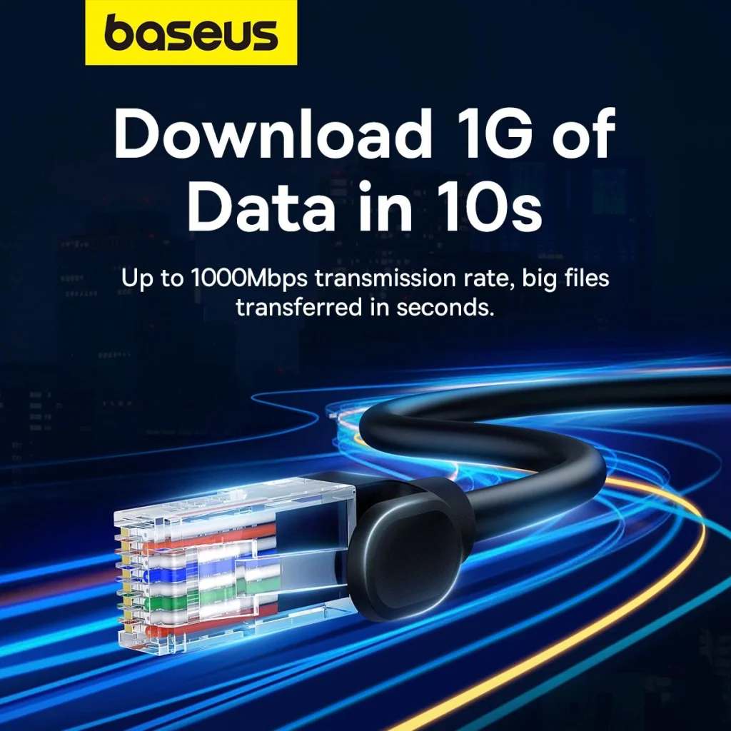 Baseus High Speed Cat 5 RJ-45 1000Mb/s Ethernet kábel 8m kör alakú - fekete Fedezze fel az új sebesség és megbízhatóság dimenzióját a Baseus High Speed Cat 5 Ethernet kábellel. Ez a kábel akár 1000 Mb/s adatátviteli sebességet garantál, így gördülékenyebbé és hatékonyabbá téve az online munkát. Az RJ-45 eszközökkel való kompatibilitás és a tiszta rézhuzalból (26AWG) való kialakítás a legmagasabb kapcsolatminőséget biztosítja. Tökéletes az irodában, otthon vagy online játékhoz, ez a kábel a megbízhatóság szinonimája. A Baseus High Speed Cat 5 RJ-45 1000Mb/s 8m Ethernet kábel legfontosabb előnyei: