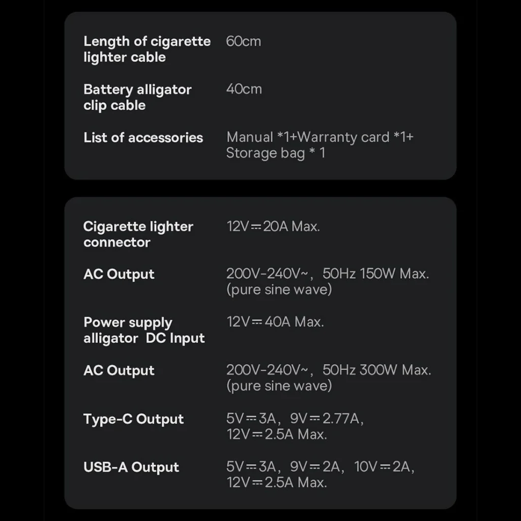 - Bemeneti feszültség (autós szivargyújtó): 12V / 20A Max