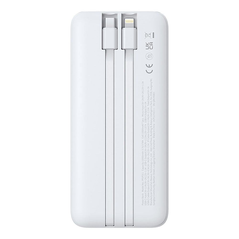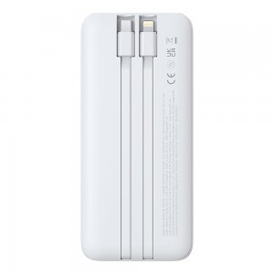 A Baseus Lipow 10000mAh 22,5W powerbank egy praktikus és sokoldalú hordozható eszköz, amely egyesíti a kompakt kialakítást, a gyors töltést és a kényelmes használatot. Két beépített USB-C és Lightning kábellel, valamint egy további Baseus Simple USB-A - USB-C 3A 20cm kábellel rendelkezik, így azonnal használatba vehető a csomagolásból kivéve. Akár 22,5W teljesítményű töltést is támogat, rendelkezik olvasható dinamikus LED kijelzővel, és lehetővé teszi több eszköz egyidejű töltését. Kiváló választás mindennapos használatra és repülőutakra is.