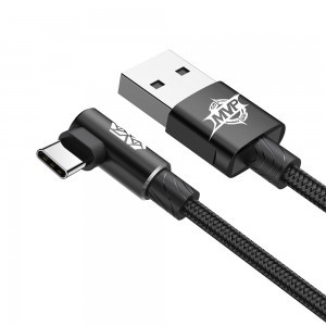 Tartós USB - USB Type-C kábel, könyök típusú csatlakozóval, így töltés közben sem zavarja a kábel a telefon használatát, főleg azok számára, akik sokat játszanak telefonjukon. Kiváló minőségű TPE anyagból készült, speciális nylon- és horgászzsinórral. Gyors és biztonságos töltéssel. Az ónozott rézhuzal gyorsabb és biztonságosabb töltést biztosít.
