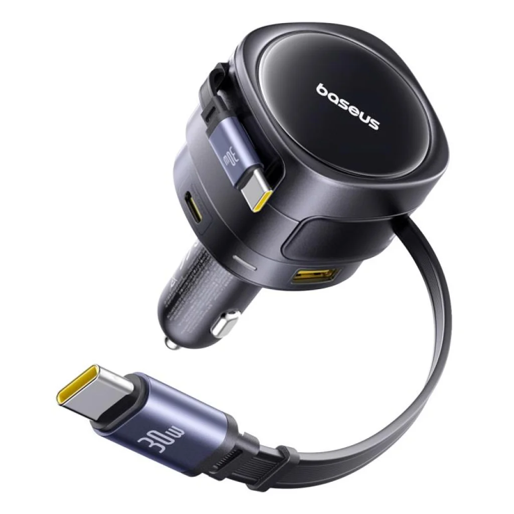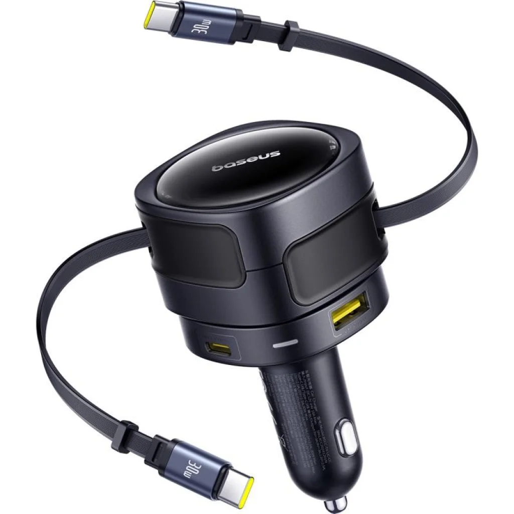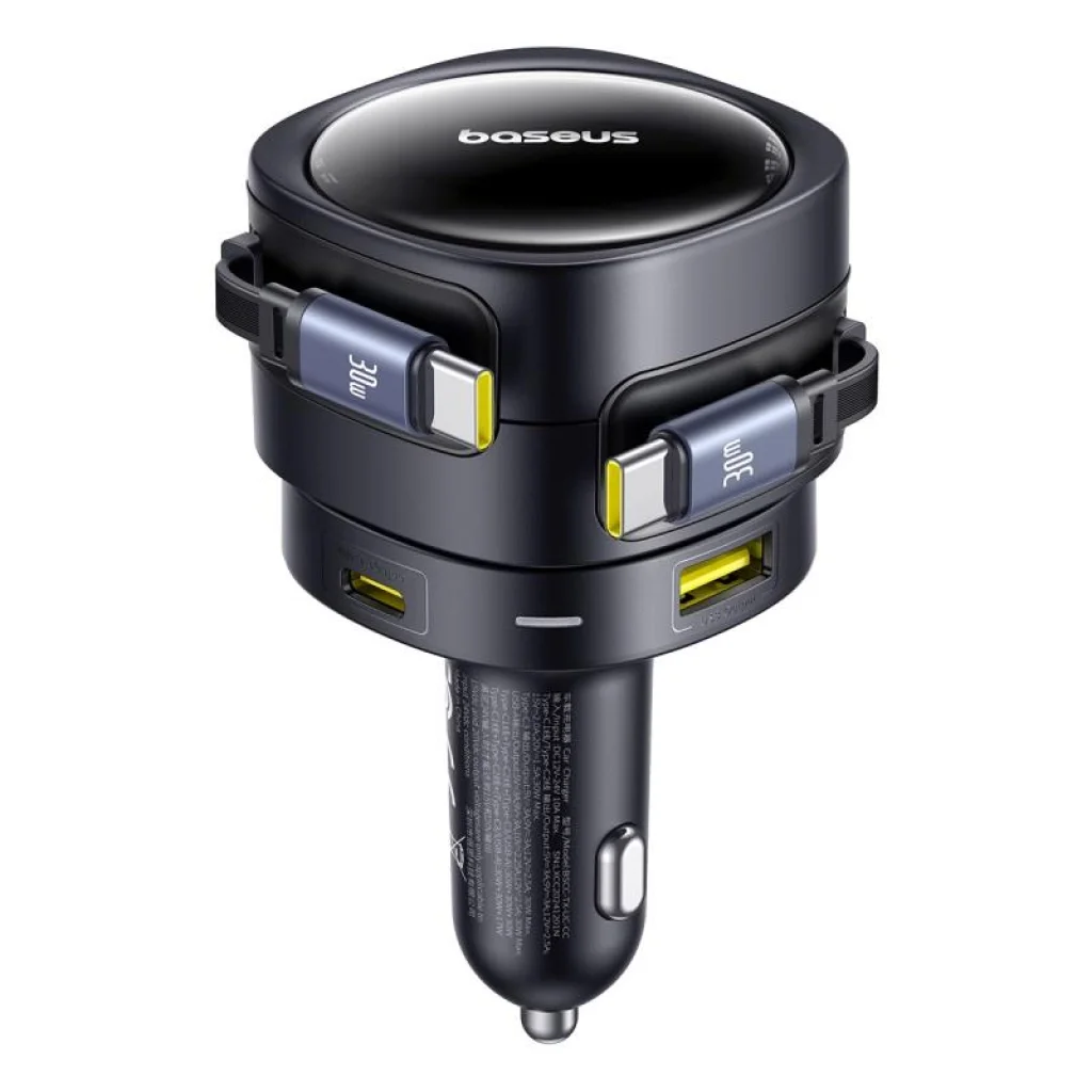 A Baseus Enjoyment Max autós töltő kozmikus fekete színben elegáns és hatékony autós töltő. Beépített C+C kábelekkel és U+C portokkal van felszerelve, összesen 90W teljesítményt támogat, lehetővé téve több eszköz egyidejű gyors töltését. A 180°-ban forgatható kábelkivonó mechanizmus maximális kényelmet biztosít a felhasználónak, így elengedhetetlen társ minden utazáshoz.