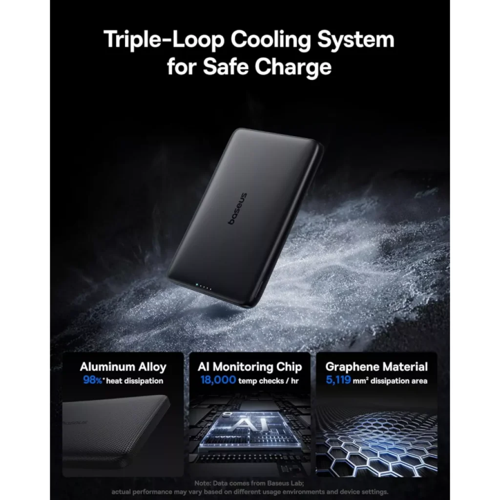 A Baseus elkötelezett a biztonság és a tartósság mellett. A PicoGo AM41 egy innovatív "Triple-Loop" hűtési rendszerrel van felszerelve, amely garantálja az optimális hőmérsékletet még intenzív használat során is.