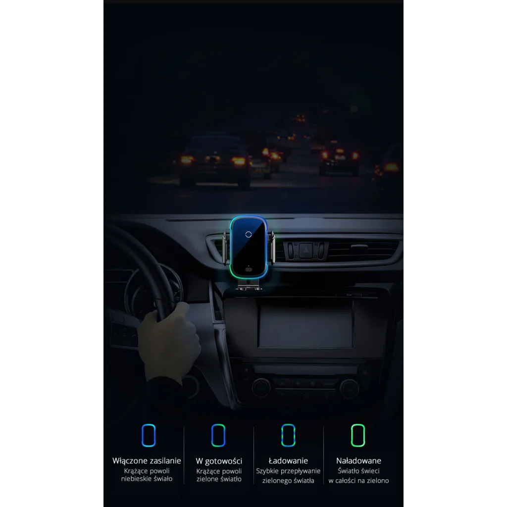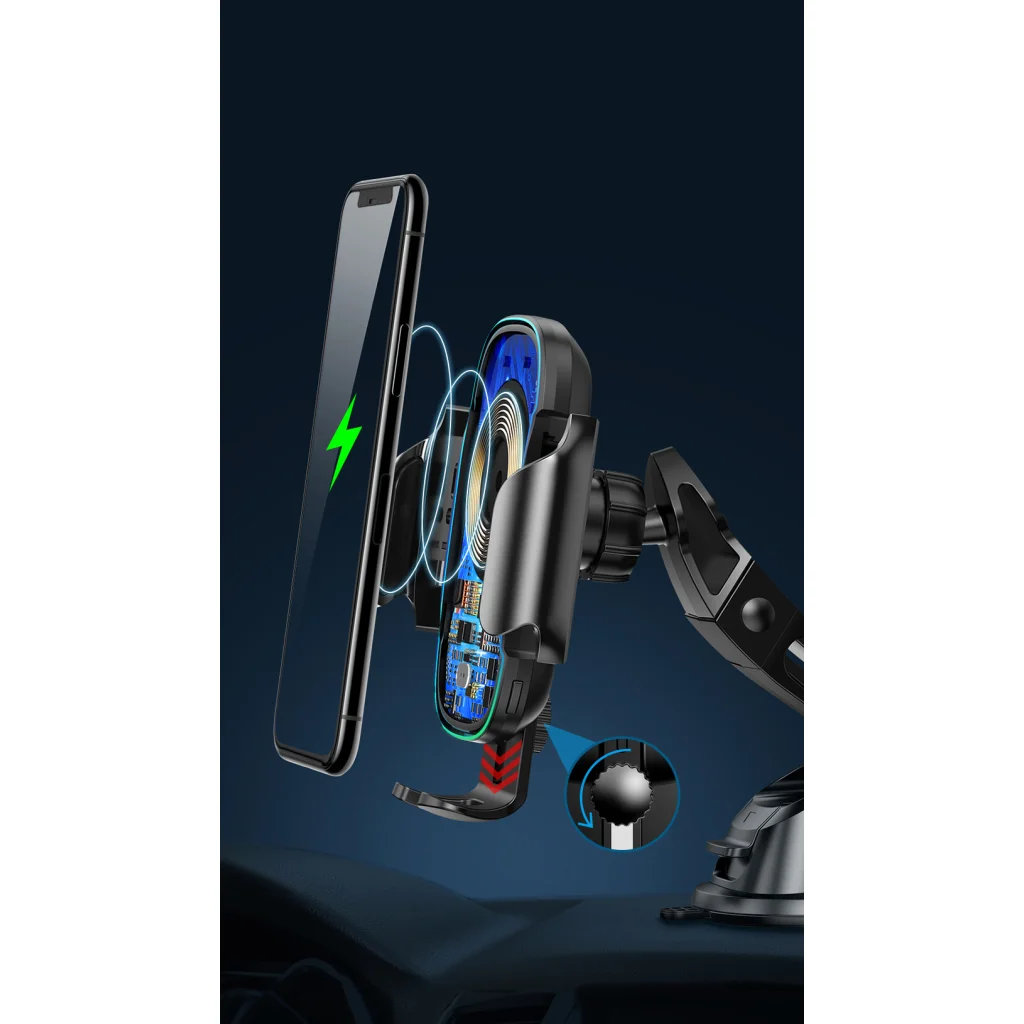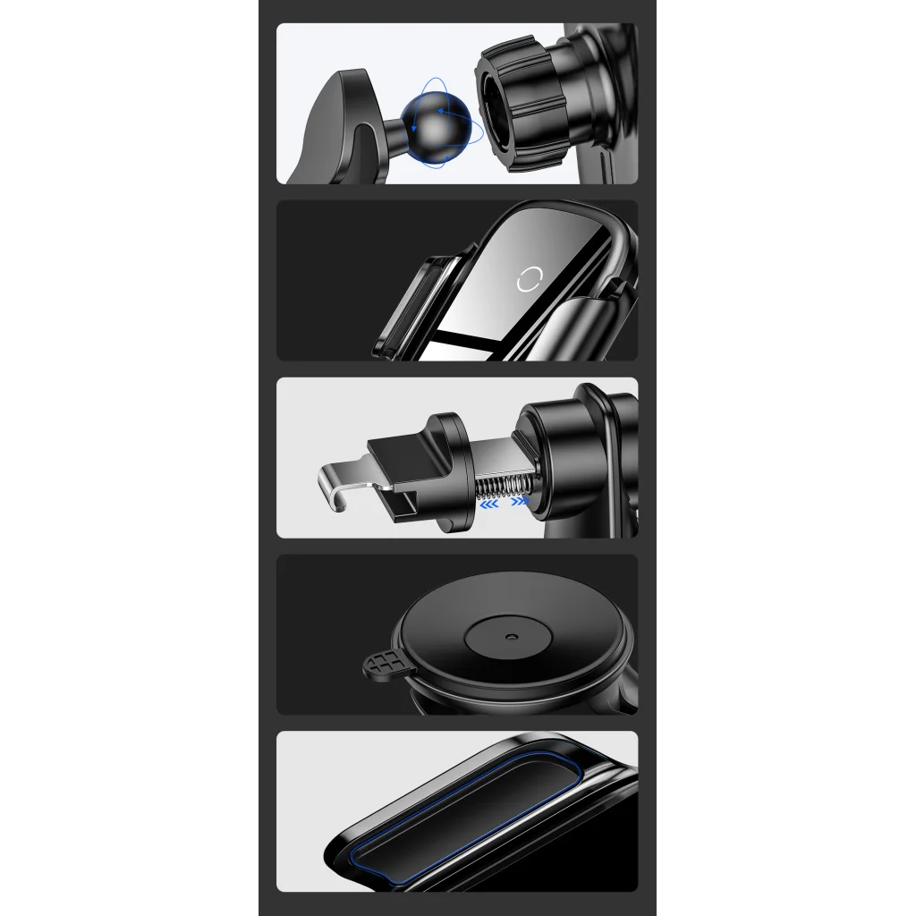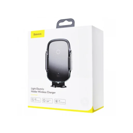 A Baseus Light Electric egy automatikus tartó univerzális változatban, szívókoronggal és rácsos kialakítással. Tökéletesen tapad a műszerfalhoz. Automatikusan meghúzódik, amikor behelyezi a telefonját. Egy kézzel is működtethető. További funkciója egy beépített 15W-os nagy teljesítményű indukciós töltő.