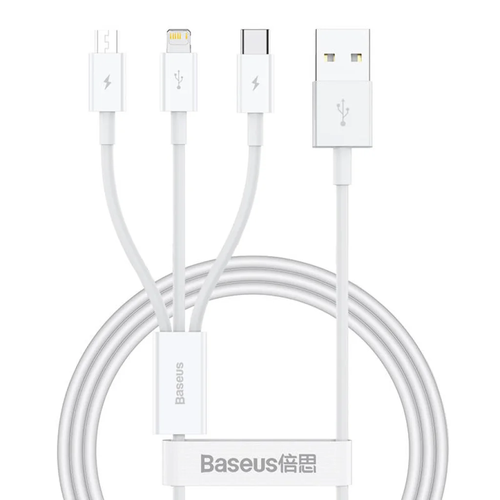 Baseus Superior Data Gyorstöltő USB - M+L+C, 3,5A, 1m (fehér)