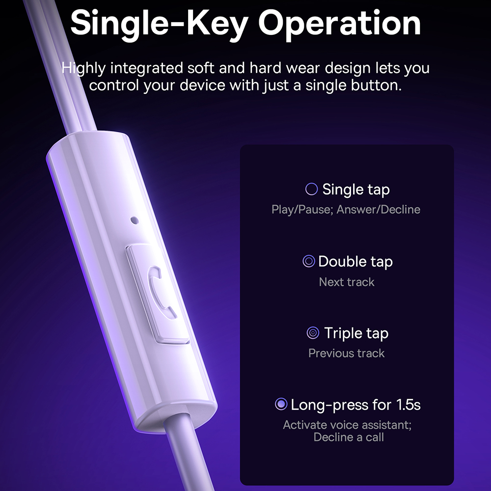 Az integrált, egyedi gombos vezérlőn (Single-Key Operation) keresztül rendkívül egyszerűen irányíthatod zenéidet és hívásaidat, anélkül, hogy elő kellene venned a telefonodat: