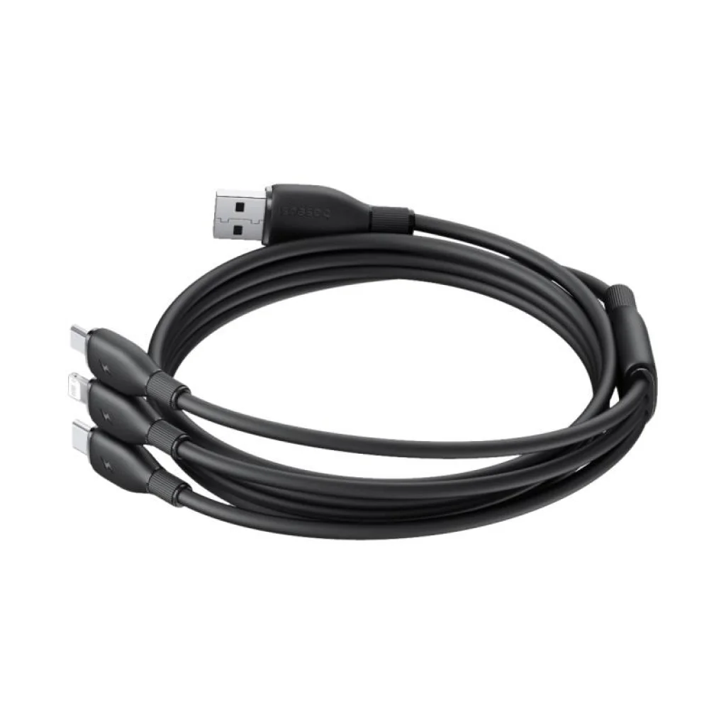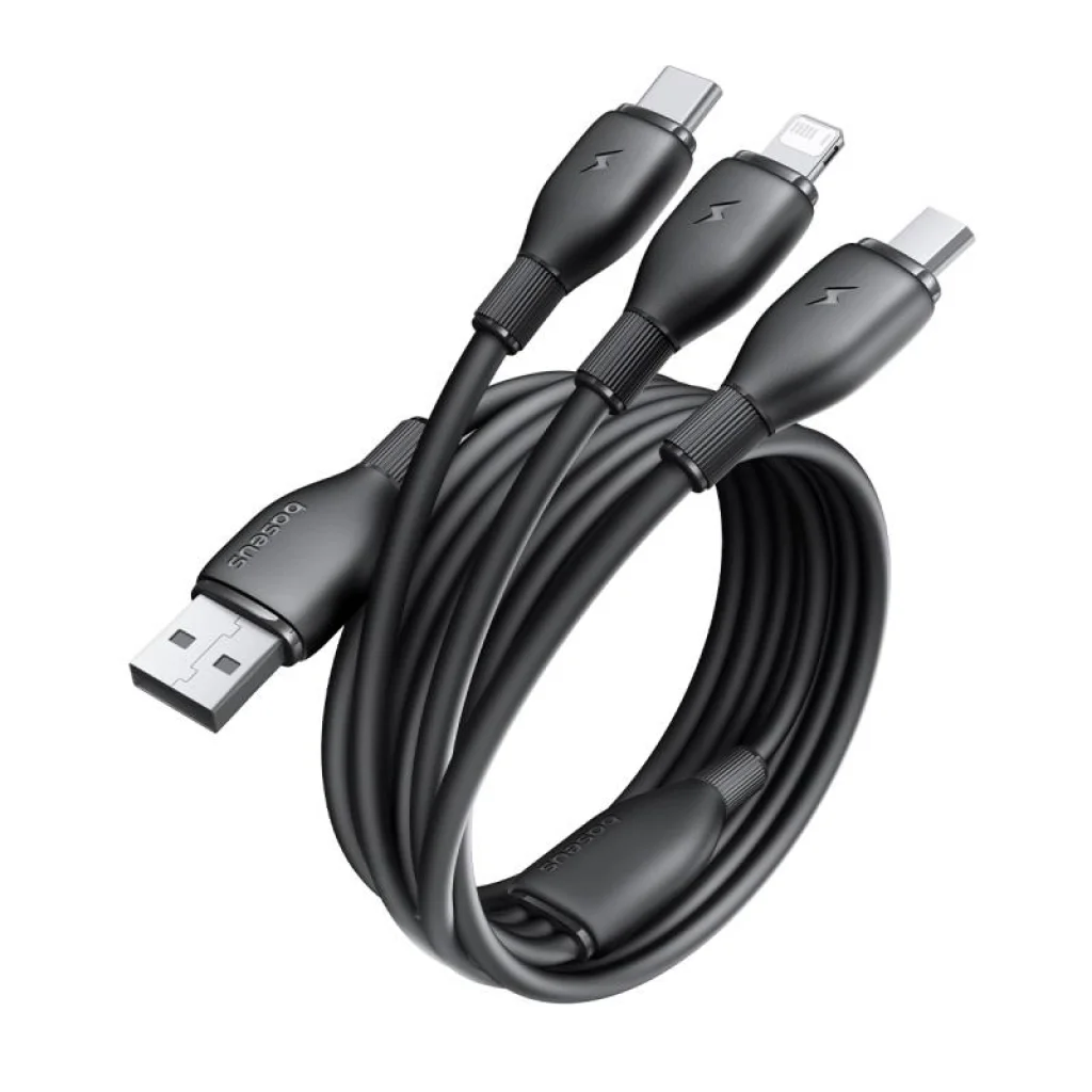 A CB000161 adatkábel kiváló minőségű PC+TPE anyagokból készült, megbízható kapcsolatot és teljesítményt biztosít. Támogatja a legfeljebb 3,5 A áramot, lehetővé téve a gyors adatátvitelt és az eszközök töltését. A kábel USB-A bemenettel és három kimenettel rendelkezik: Micro USB, Lightning és USB-C, így széleskörű eszközökkel, például okostelefonokkal, táblagépekkel és egyéb kiegészítőkkel kompatibilis. Négy elegáns színben kapható: Cosmic Black, Moon White, Nebula Purple és Galaxy Blue, lehetővé téve, hogy megfeleljen az egyéni preferenciáknak.