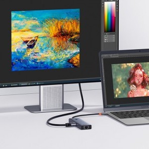 Gyakran másol fájlokat az eszközök között? A Baseus Hub megfelel az elvárásoknak! Stabil és villámgyors adatátvitelt biztosít akár 5 Gbps sebességgel. A dokkolóállomás lehetővé teszi eszközei töltését is akár 100 W-os PD-vel. Több eszköz csatlakoztatása lehetséges, például egér, billentyűzet, táblagép, okostelefon vagy hordozható meghajtó. A HDMI-port kiváló képminőséget kínál 4K@30Hz felbontással. A Hub Ethernet portja gyors és stabil internetkapcsolatot biztosít, így zökkenőmentesen filmezhet vagy játszhat.