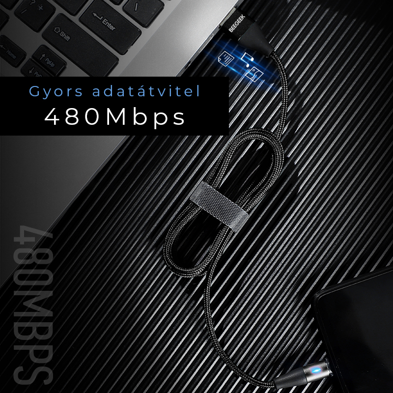 Minőségi kábelharisnyázás a tartósság érdekében. A maximum teljesítmény 3A. A kábel töltésre és adatátvitelre is használható. A fej mágneses, így töltés után egy pillanat alatt leválaszthatja, a telefonjában marad a fej (360 fokos fej). LED világítással a fejen. Plusz kiegészítő fejek is megvásárolhatóak hozzá.