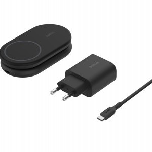 A Belkin BOOSTCHARGE Qi2 15W Magnetic 2in1 Stand készen áll a használatra, amint kiveszed a dobozból. Ahogyan a képeken is látható, a csomag tartalmaz egy 20W-os USB-C hálózati adaptert és egy hozzá illő USB-C kábelt, így nem kell külön kiegészítőket vásárolnod – csak csatlakoztasd és kezdd el a töltést!