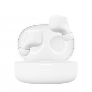- Praktikus töltőtok: A sima, fehér, ovális alakú töltőtok nemcsak biztonságosan tárolja és védi a fülhallgatókat, de több extra feltöltést is biztosít útközben, így mindig készen áll a zenehallgatásra.