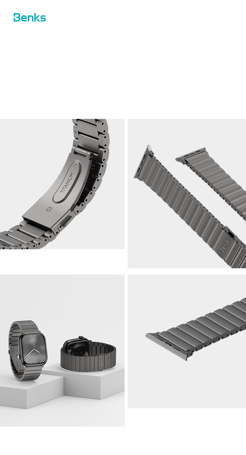 Titán könnyedség és stílus Az AeroTitan szíj ultra-könnyű titán láncszemekkel és aerodinamikus sziluettel ötvözi a tartósságot és eleganciát