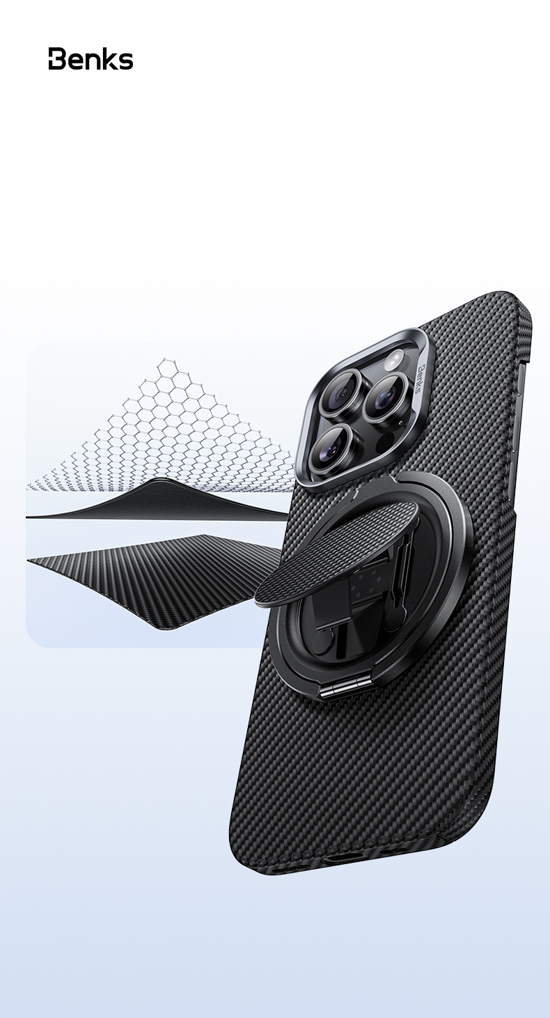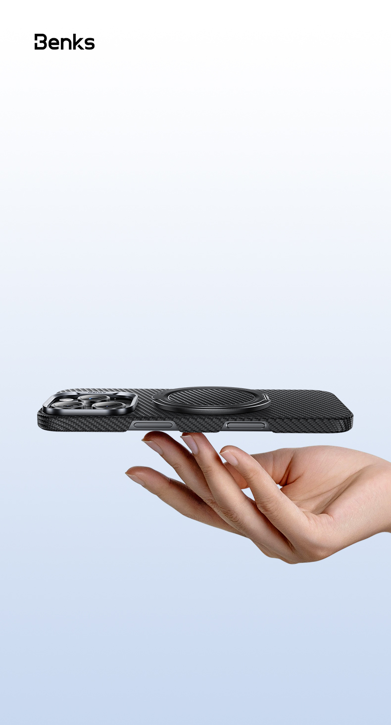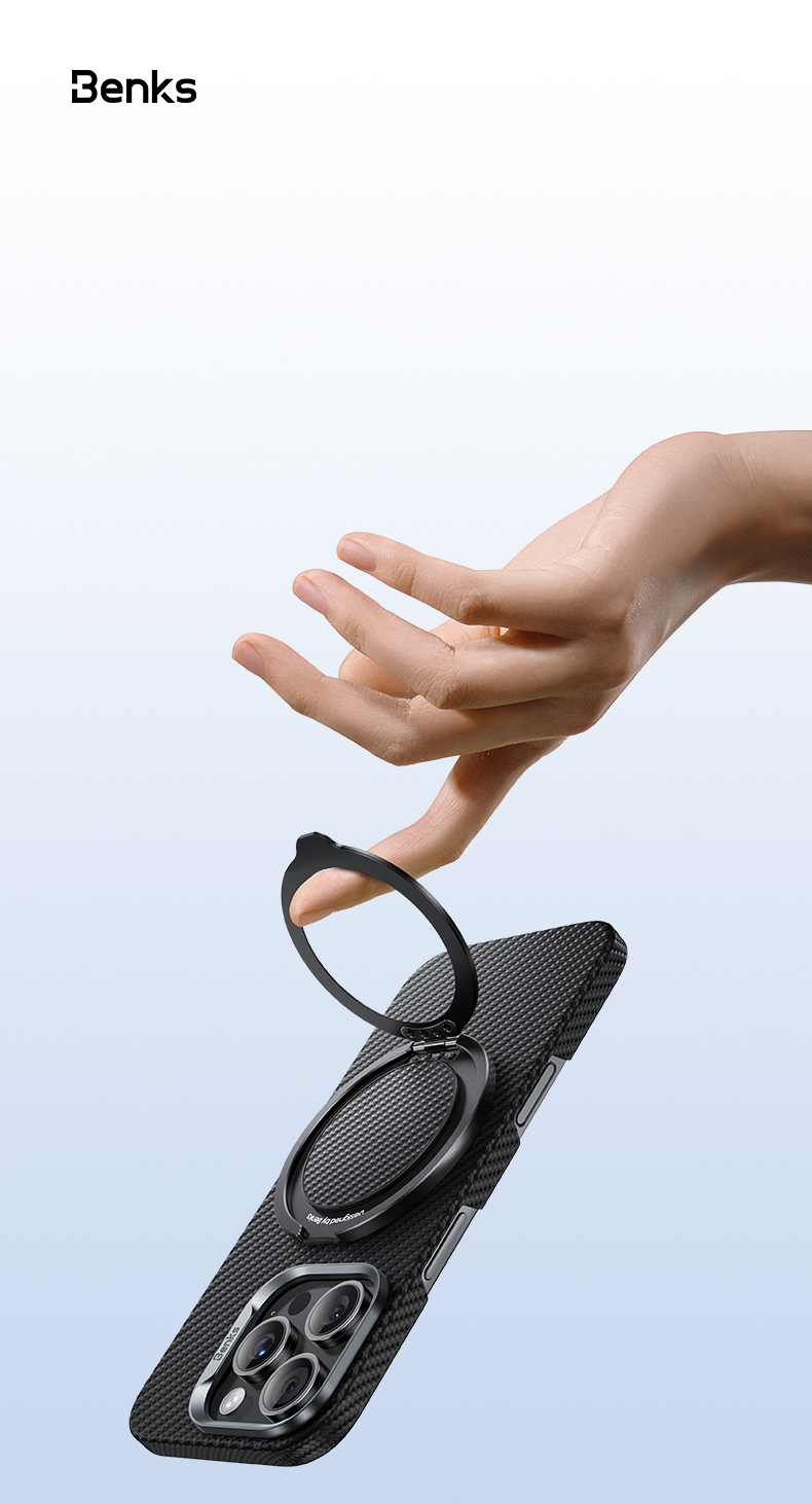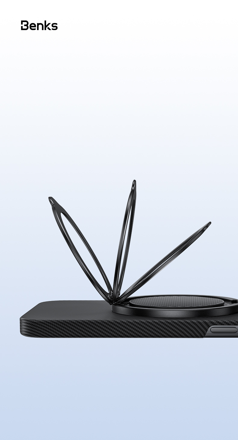 A Benks ArmorPop egy ultravékony, 600D aramid szálból készült telefontartó, amely erős N52 mágnesekkel biztonságosan rögzül a MagSafe-kompatibilis készülékekhez. Stabil fogást biztosít, és 360°-ban forgatható, állítható állványként is használható, így kényelmesen nézhetsz videókat vagy dolgozhatsz bárhol.