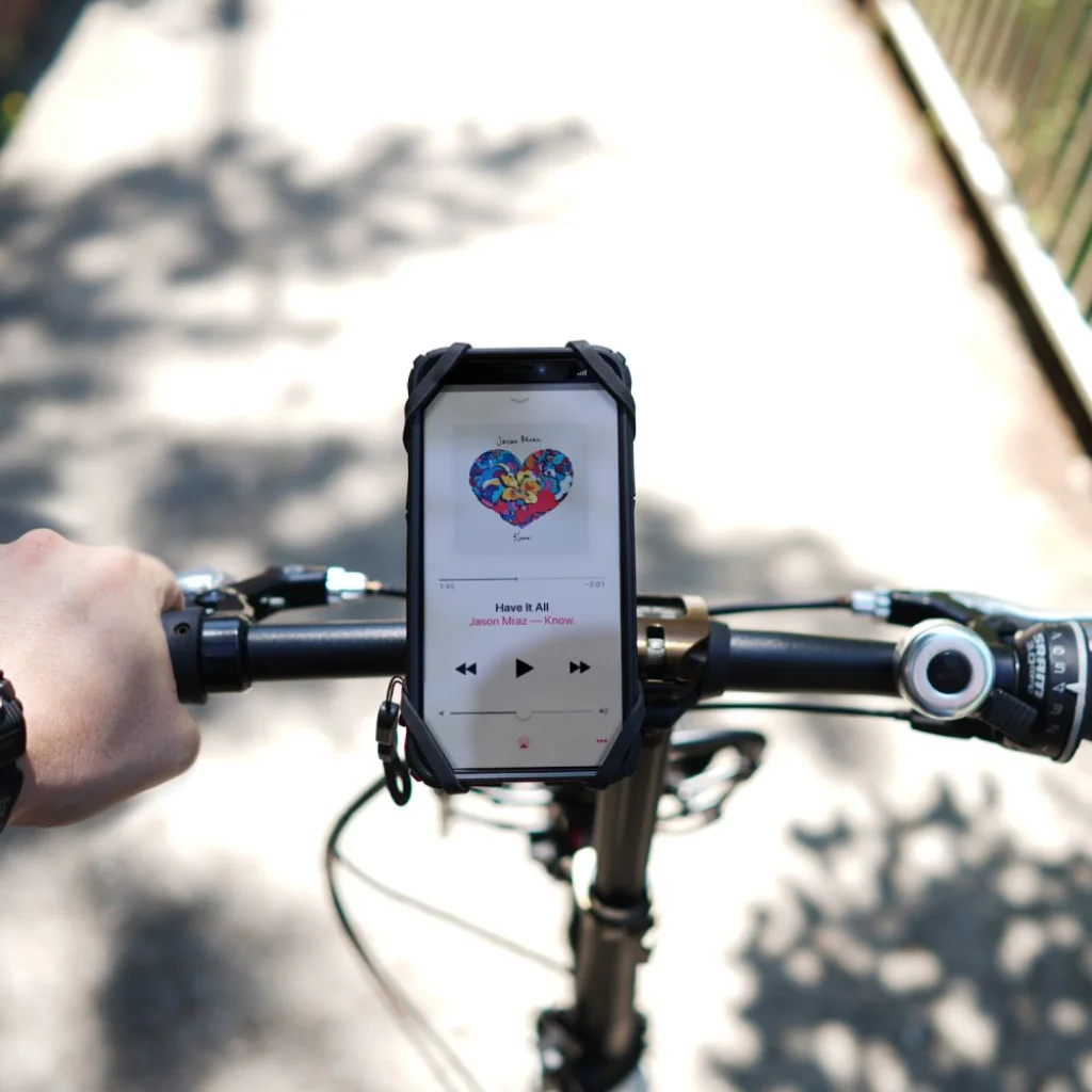 Bicikli kormányra erősíthető univerzális telefontartó, mely prémium minőségű műanyagból készült és csúszásmentes telefonnal érintkező felületekkel lett ellátva így könnyen elkerülhető minden telefont ért karcolás. A kormányra rögzíthető rész fém anyaghasználatú részeket is kapott, hogy a legstabilabb rögzülés is elérhető lehessen. Dél-Korea-i minőség!