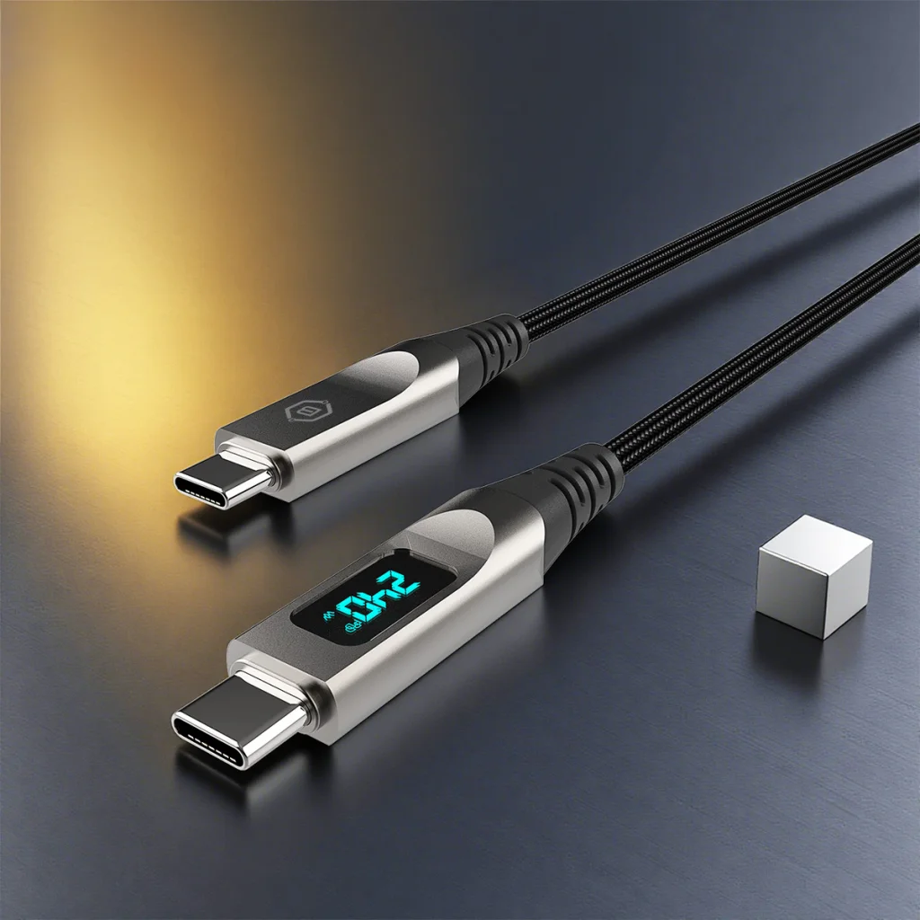 - Gyors Töltés akár 240W (5A) – Hatékony töltés okostelefonokhoz, táblagépekhez, power bankokhoz és más USB-C eszközökhöz.