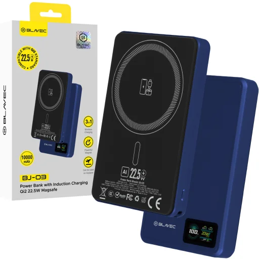 Blavec Power Bank 10000mAh BJ01 Slim 15mm – Type C – 22.5W Magnetic Wireless MagSafe 3-in-1 (PBBJ01-MC10G) Grey