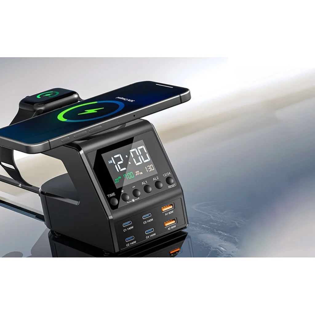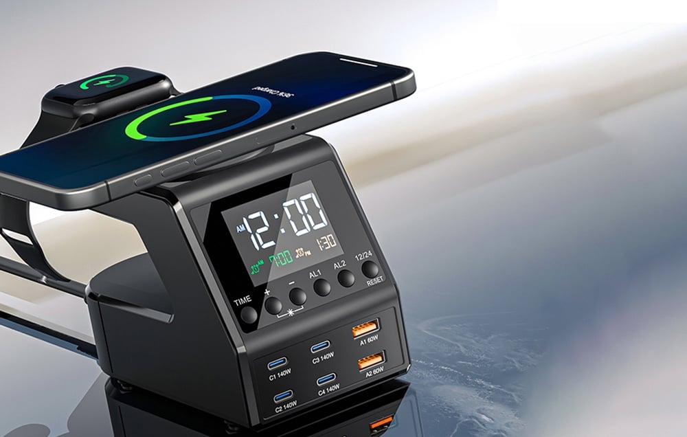 A Blitzwolf BW-FW10 nem csak egy stílusos ébresztőóra kettős ébresztési funkcióval, hanem egy fejlett 10 az 1-ben töltőállomás is, amely akár 240 watt kimeneti teljesítményt kínál. Kényelmesen és biztonságosan tölti az összes készülékét - az okostelefontól a laptopig - egy helyen.