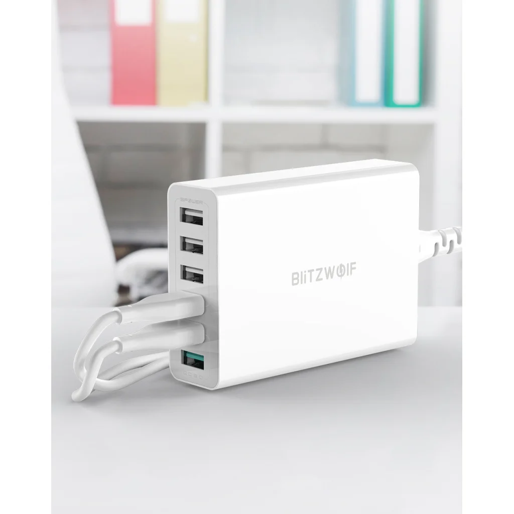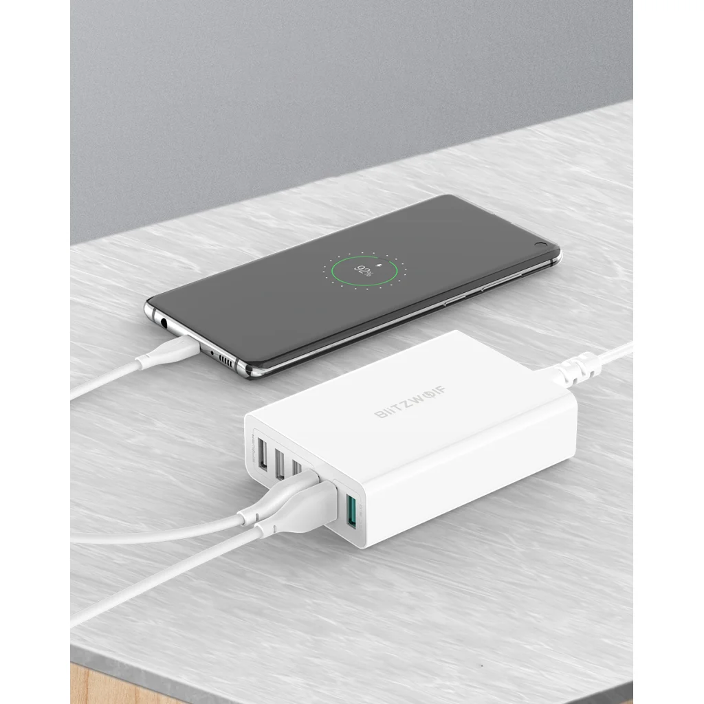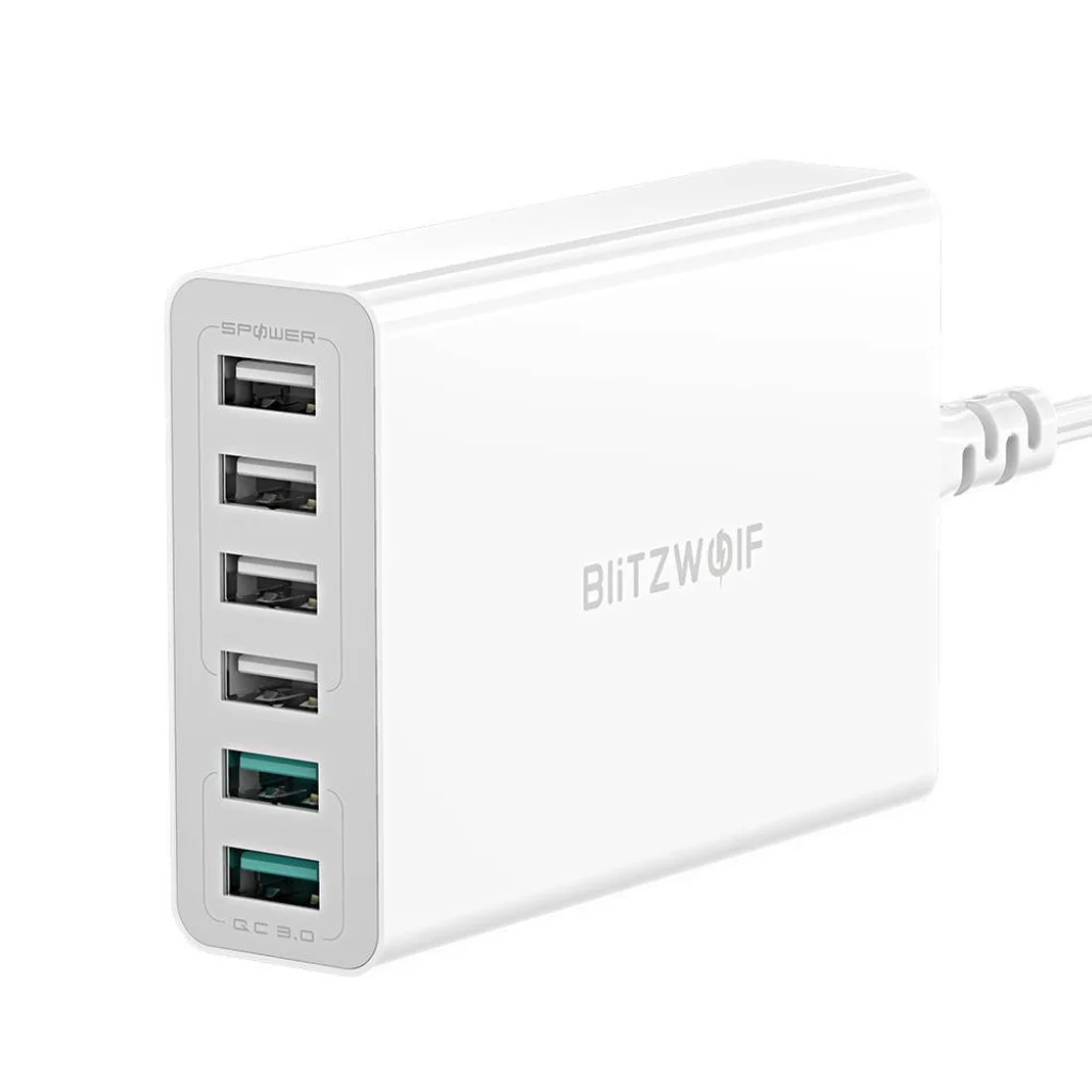 Termék leírás 6x USB csatlakozóval, 2x QC 3.0 támogatással és 4x normál USB 2.0 QC3.0 QC2.0, Huawei FCP, Apple 2.4A, Samsung, BC1.2 töltés támogatással 23mm x 65mm x 94mm méret 60W teljesítmény 100-240V 50 / 60Hz 1.7A bemenet 5V feszültség