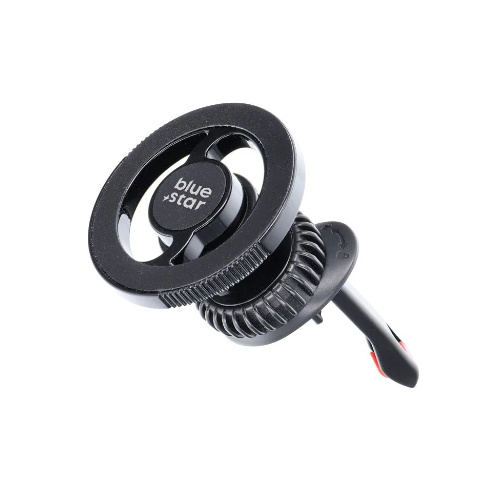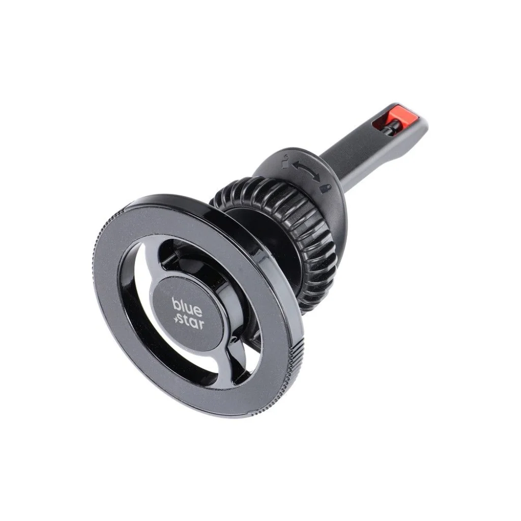 BLUE STAR FLIPTOK X1 egy mágneses autós tartó, amely biztosítja az okostelefon kényelmes és biztonságos rögzítését a jármű légbeömlőjéhez. A tartó kompatibilis a MagSafe technológiával, így ideális megoldást nyújt az iPhone 12 sorozat vagy újabb készülékek, illetve a mágneses rögzítést támogató tokok felhasználói számára. A tartó előnye forgatható kialakítása, amely lehetővé teszi a készülék megtekintési szögének egyszerű beállítását 360 fokban. Emellett rendelkezik forgási mechanizmus zárral is. Az erős mágnes beépítve a tartóba biztosítja, hogy az okostelefon helyén maradjon még dinamikus vezetés közben is, kiküszöbölve a készülék véletlen elcsúszását vagy leesését. Az innovatív dizájn és az egyszerű telepítés nemcsak praktikus, hanem stílusos kiegészítőjévé teszi a tartót bármely autó belső tere számára. Kompakt formájának és szilárd szerkezetének köszönhetően a tartó tartós és diszkrét. A tartó telepítése gyors és intuitív – egyszerűen rögzítse a légbeömlőre és helyezze rá MagSafe-támogatott készülékét vagy tokját. A két mellékelt fémkorongnak köszönhetően a tartó olyan okostelefonokkal is használható, amelyek nem támogatják a mágneses rögzítést.