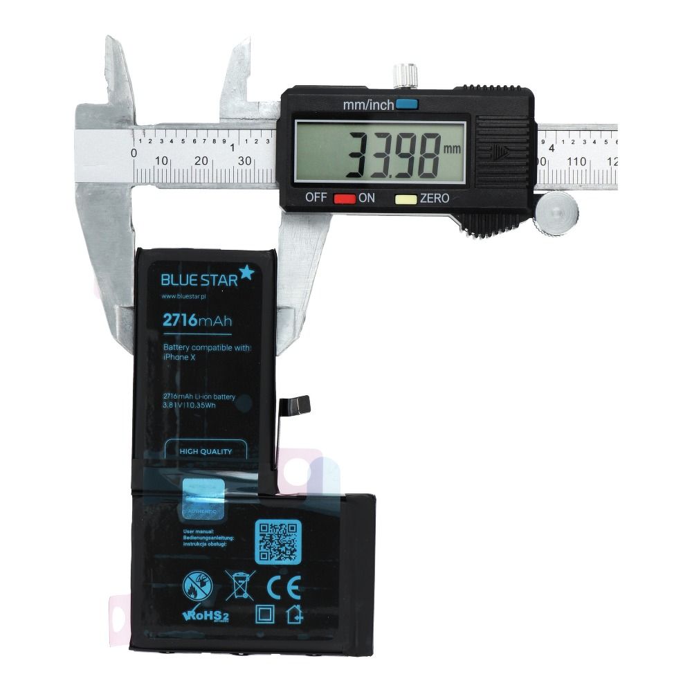 A Blue Star HQ akkumulátor kifejezetten iPhone modellekhez tervezve. Maximális precizitással készült, tökéletesen illeszkedik a dedikált modellekhez. Számos teszt igazolja a biztonságos működését. Lítium-ion cellákból készült, a legújabb technológiák alkalmazásával, beleértve a lézeres hegesztést és a precíz automatizálást. Az akkumulátor élettartama 800 töltési/kisütési ciklus. Kutatások kimutatták, hogy még 500 töltési ciklus után is a Blue Star HQ akkumulátorok 80%-os kapacitást mutattak. Ugyanebben a tanulmányban a standard akkumulátorok 75%-ot értek el mindössze 120 ciklus után. Az akkumulátor kettős IC védelmi rendszert tartalmaz, amely egyrészt ellenőrzi az áramfolyás stabilitását az akkumulátor és a telefon között, másrészt 1%-os pontossággal jelzi az eszköz töltési állapotát. Ezáltal a felhasználó kész a töltőkészülék csatlakoztatására, és nem éri váratlan leállás. Az akkumulátor számos védelemmel rendelkezik: túltöltés, kisütés, rövidzárlat és hővédelem ellen. Hatékonyan működik magas és alacsony hőmérsékleten. A készlet tartalmazza a rögzítőszalagot, amely megkönnyíti az akkumulátorok beszerelését. A szalag nagyon tartós és akár 5 kg szakítószilárdsággal tesztelték. Műszaki adatok: Cellák: li-lon Kettős IC védelmi chip Nincs memóriahatás Ciklusszám: 800 Rögzítőszalag mellékelve