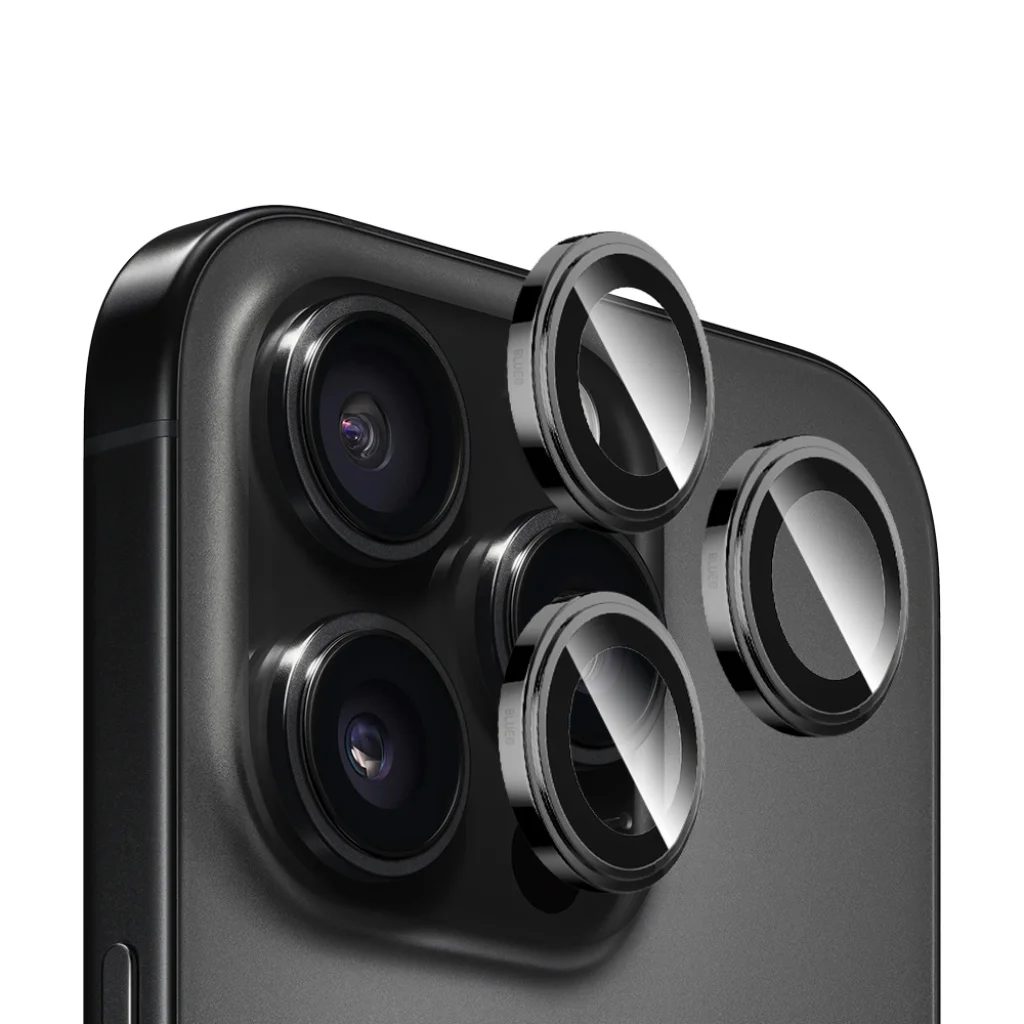 Termék leírás Blueo - Zafírkristály Eredeti Lencseüveg - iPhone 16 Pro / iPhone 16 Pro Max - Fekete Titán üvegfólia