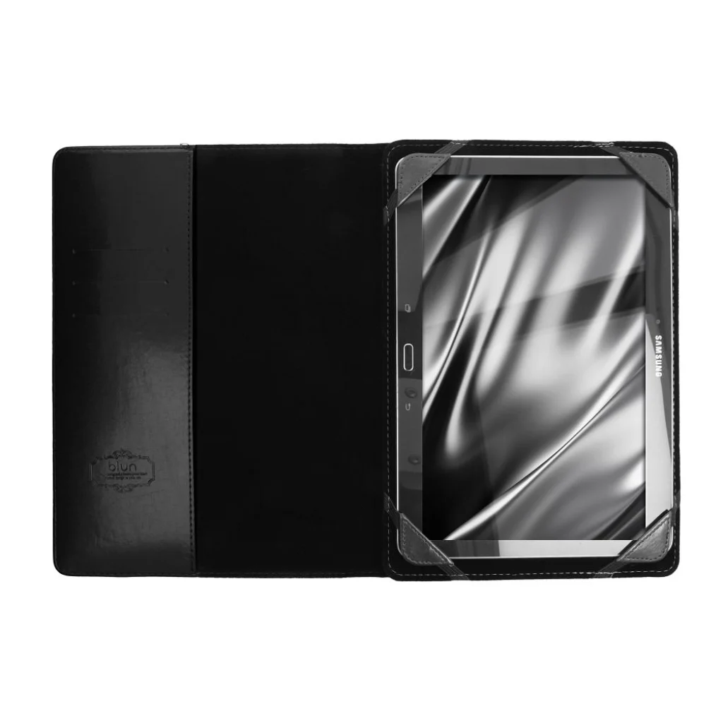 Vékony elegáns állvány tok Blun márka. Alkalmas 7"-os méretű tablethez. Belül mikroszálas béléssel, amely védi a készülék képernyőjét és megelőzi a sérüléseket. A tokot olyan felhasználók számára tervezték, akik gyakran használják a készüléket a nap folyamán. Kiváló minőségű anyagokból készült, nagyon elegáns és kényelmes kézben tartani. Kompakt mérete és alacsony súlya miatt tökéletesen illeszkedik a kézitáskába vagy a poggyászba. Emellett szabad hozzáférést biztosít a készülék összes funkciógombjához. A tartónak kényelmes rögzítése van, amely stabil helyzetben tartja a tabletet, ugyanakkor könnyű összeszerelést és szétszerelést tesz lehetővé. A belső rész rendkívül puha mikroszálas béléssel van ellátva, amely megvédi a tabletet a karcolásoktól és a kisebb sérülésektől. A tok TV állvány funkcióval rendelkezik, amely megkönnyíti a készülék használatát. Négy kis kényelmes zsebbel rendelkezik, amelyek hasznosak a szükséges dokumentumok számára. A tokhoz maximum 12,5 (mag.) X 19,5 (sz.) Cm méretű készülék illeszkedik. Anyag: Eco-bőr Csomagolás: Doboz Szín: Fekete