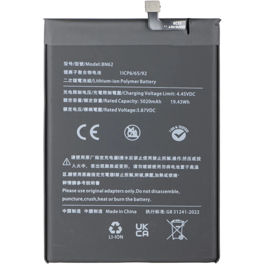 Ez az utángyártott BN62 akkumulátor kiváló minőségű csere, amelyet úgy terveztek, hogy könnyedén helyreállítsa készüléked teljesítményét és megbízhatóságát. Akár akkumulátor-romlással küzdesz, akár csak egy megbízható tartalékra van szükséged, ez az akkumulátor költséghatékony és hatékony megoldást nyújt, hogy telefonod a legjobb formáját hozza. Az eredetivel megegyező kapacitással készült, hosszú élettartamot és zökkenőmentes működést biztosít, így garantálva a következetes és megbízható élményt - akárcsak a gyárilag beépített verzió.