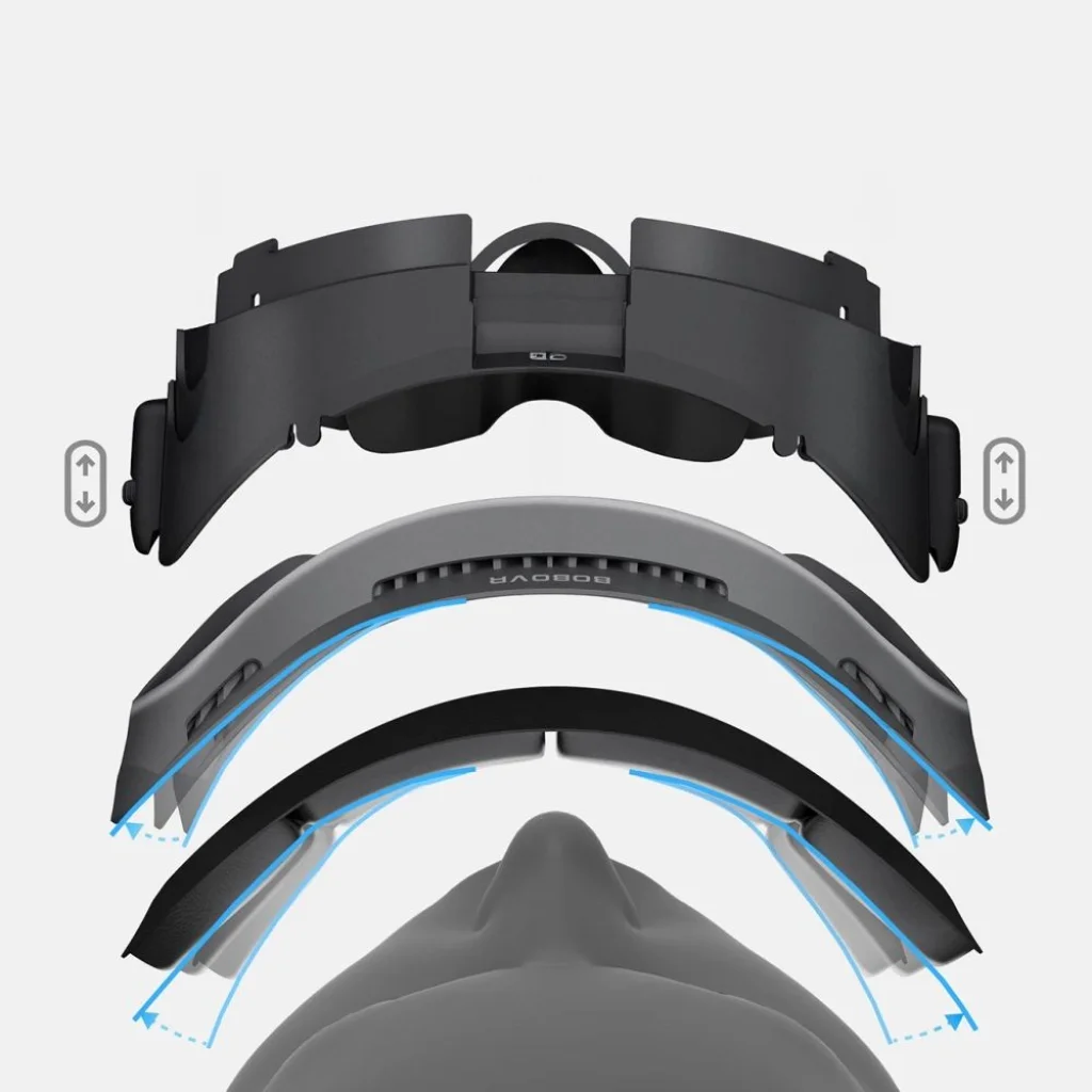 A BoboVR F3 egyik kiemelkedő jellemzője a képernyőtől való távolság sima, fokozatmentes beállítása. Az interfész oldalán található forgatógombok segítségével könnyedén finomhangolhatja a headset kijelzőjének távolságát az arcától. Ez nemcsak a vizuális tisztaságot optimalizálja, hanem lehetővé teszi a látómező pontos beállítását is, maximalizálva az immersziót és minimalizálva a szemfáradtságot. Ez a rugalmas beállítás biztosítja, hogy minden felhasználó megtalálja a számára ideális vizuális élményt.