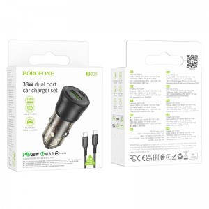 Borofone autós töltő BZ25 Journey - USB + Type C - PD 38W 3A Type C to Type C kábel fekete