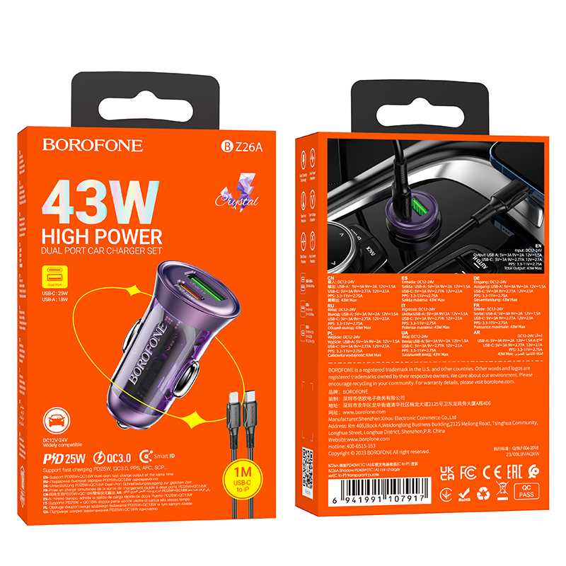 - Kimenet: Type-C: 25W(PD/QC/FCP/AFC); USB-A:18W(QC/FCP/AFC); Type-C+USB-A=43W