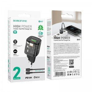- Kimenet: Type-C: 20W (PD/QC/FCP/AFC), USB-A: 18W (QC/FCP/AFC) Type-C+USB-A: 5V/3A