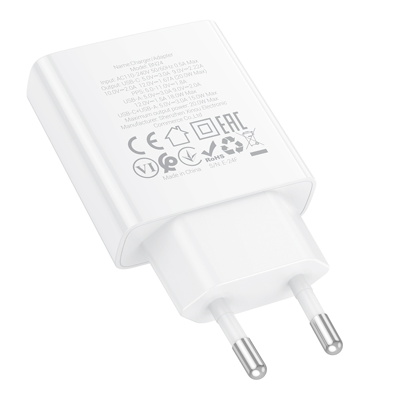 - Kimenet: USB-C: 20W (PD/QC/FCP/AFC); USB-A: 18W (QC/FCP/AFC); USB-C+USB-A=5V/3A