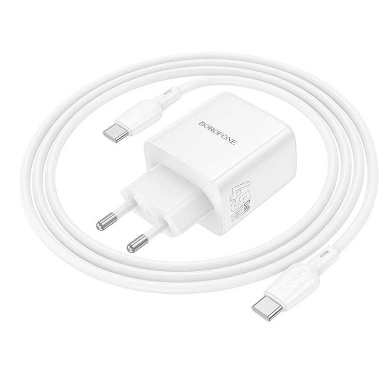 - Termék neve: Borofone BN30 Cargador GaN fali töltő - USB + Type C - QC 3.0 PD 45W Type C to Type C kábellel fehér