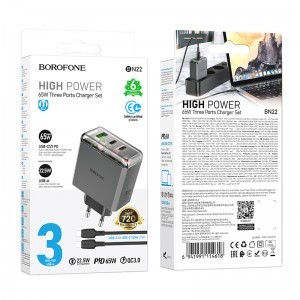 - Kimenet: USB-C1/C2: 65W (PD/QC/FCP/AFC); USB-A:22.5W(QC/FCP/SCP/AFC); C1+C2=45W+20W; C1+A=45W+18W; C2+A=5V/3A; C1+(C2+A)=45W+15W