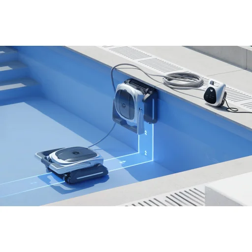 A Bublue D10P automatizálja a medence tisztítását. Négy kefe, két szívónyílás és 3566 GPH áramlási sebesség lehetővé teszi a medence aljáról és falairól a szennyeződések hatékony eltávolítását, míg a Bluehole Tech™ technológiával ellátott 150 W-os háromtengelyes motor biztosítja a stabil, hatékony működést. A robot felmászik a falakra, növelve ezzel a tisztítási hatótávolságot. Vezetékes modellként nem korlátozza az akkumulátor élettartama, és megszakítás nélkül működik, míg a TangleEase™ technológia csökkenti a kábel csavarodását tisztítás közben. A Bluesonic Path™ technológia felelős az útvonaltervezésért és a medence maximális lefedettségéért, míg a mobilalkalmazás lehetővé teszi a működési állapot ellenőrzését és a tisztítási mód kiválasztását anélkül, hogy a robotot ki kellene venni a vízből. Az UV-ellenállás és a különböző típusú medencékkel való kompatibilitás hosszú, problémamentes működést biztosít.