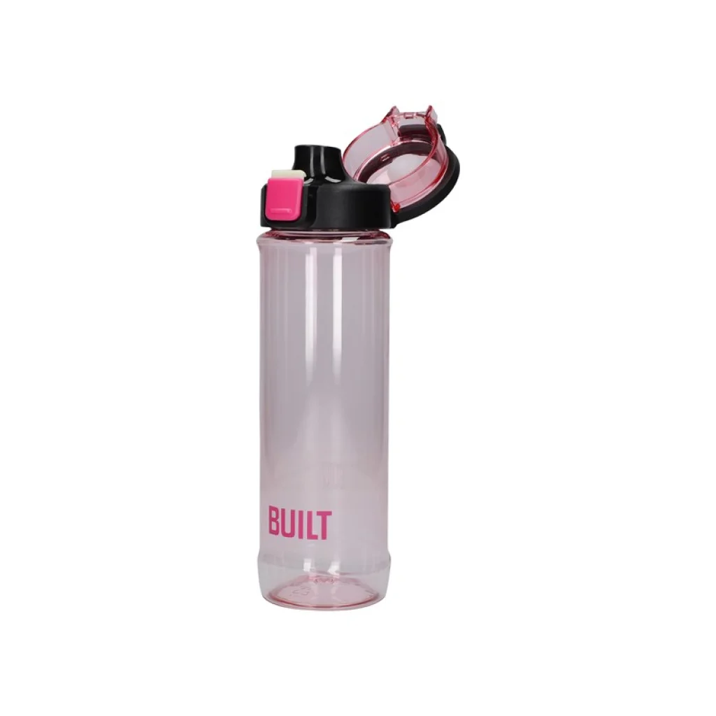 Ez az italpalack átlátszó, rózsaszín-fekete fedéllel, amely egyszerű klipsz funkcióval rendelkezik a könnyű használat érdekében.