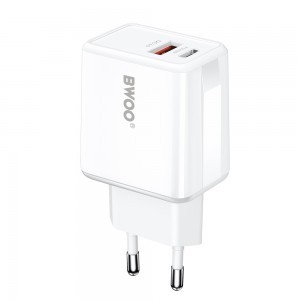 A gyors töltő két porttal van felszerelve — USB-C és USB-A — lehetővé téve két eszköz egyidejű gyors töltését. Az USB-C port támogatja a PD protokollt, és maximális 20W teljesítményt ér el, amikor önállóan működik, míg az USB-A port QC technológiát támogat, akár 18W teljesítménnyel. Amikor mindkét portot egyszerre használják, a töltő még mindig gyors töltést biztosít 18W-on, lehetővé téve két eszköz egyidejű töltését. A csomag tartalmaz egy USB-C - USB-C kábelt, amely támogatja a 65W teljesítményű PD töltést, így ez a termék még praktikusabb és azonnali használatra kész. A töltő háza lángnemesített PC anyagból készült, amely ellenáll a magas hőmérsékleteknek és a leeséseknek, biztosítva a tartósságot és a biztonságot. A beépített intelligens chip automatikusan felismeri az aktuális intenzitást és feszültséget, védve az eszköz akkumulátorát a károsodástól. Az eszköz nyolc szintű védelmet kínál, beleértve a túlfeszültség, túlképzés, túltöltés, rövidzárlat, túlterhelés, túlhevülés, akkumulátor károsodás és túlképzési védelem. Ezen kívül a beépített okos transzformátor biztosítja a stabil feszültséget és áramot, biztonságos és megbízható töltést biztosítva bármely helyzetben.