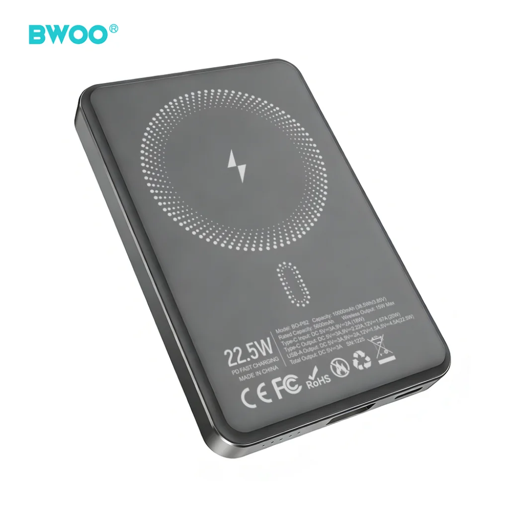 Belsejében egy kiváló minőségű, 10 000 mAh kapacitású kobalt akkumulátor található, amely stabil és hosszú élettartamú működést biztosít. A 8N szupermágneses rendszer biztonságos és azonnali csatlakozást tesz lehetővé a kompatibilis készülékekhez, támogatva a vezeték nélküli töltést akár 15 W teljesítménnyel. A gyors vezetékes töltéshez az USB-C port akár 20 W PD teljesítményt nyújt, míg a 18 W-os gyorstöltési bemenet hatékony újratöltést biztosít magának a powerbanknak is.