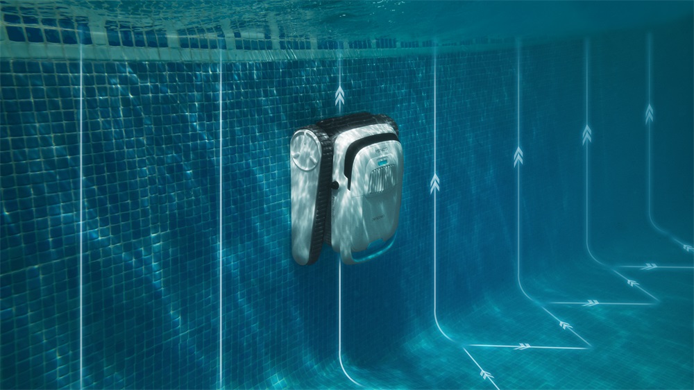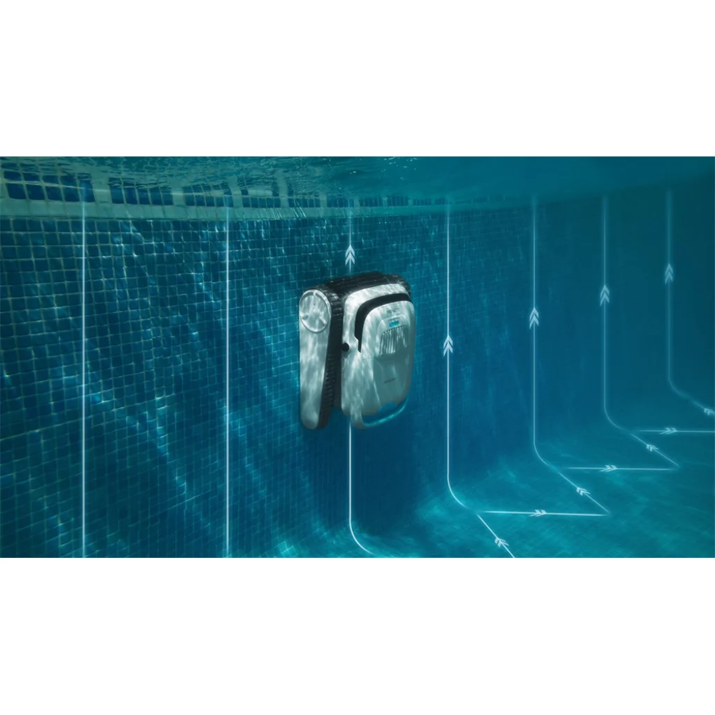 - Akkumulátor lemerülése előtt automatikusan a medence falához navigál