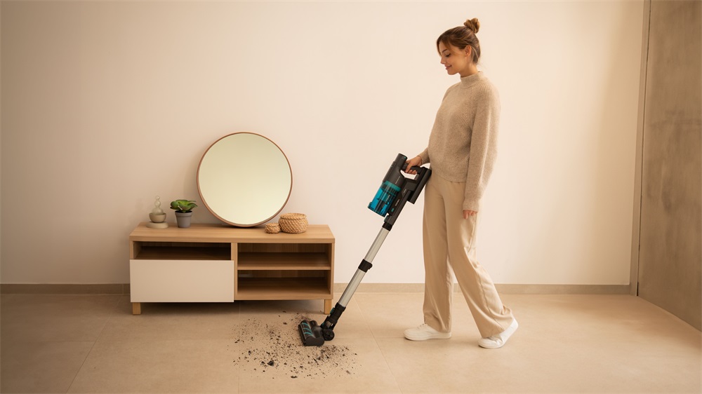 - A speciálisan kialakított vegyes kefe szilikon sörtékkel és csíkokkal hatékonyan távolítja el és zárja magába a szennyeződéseket, így padlója makulátlanul tiszta marad. A kefefejen található LED világítás segít észrevenni a port a sötétebb sarkokban is.