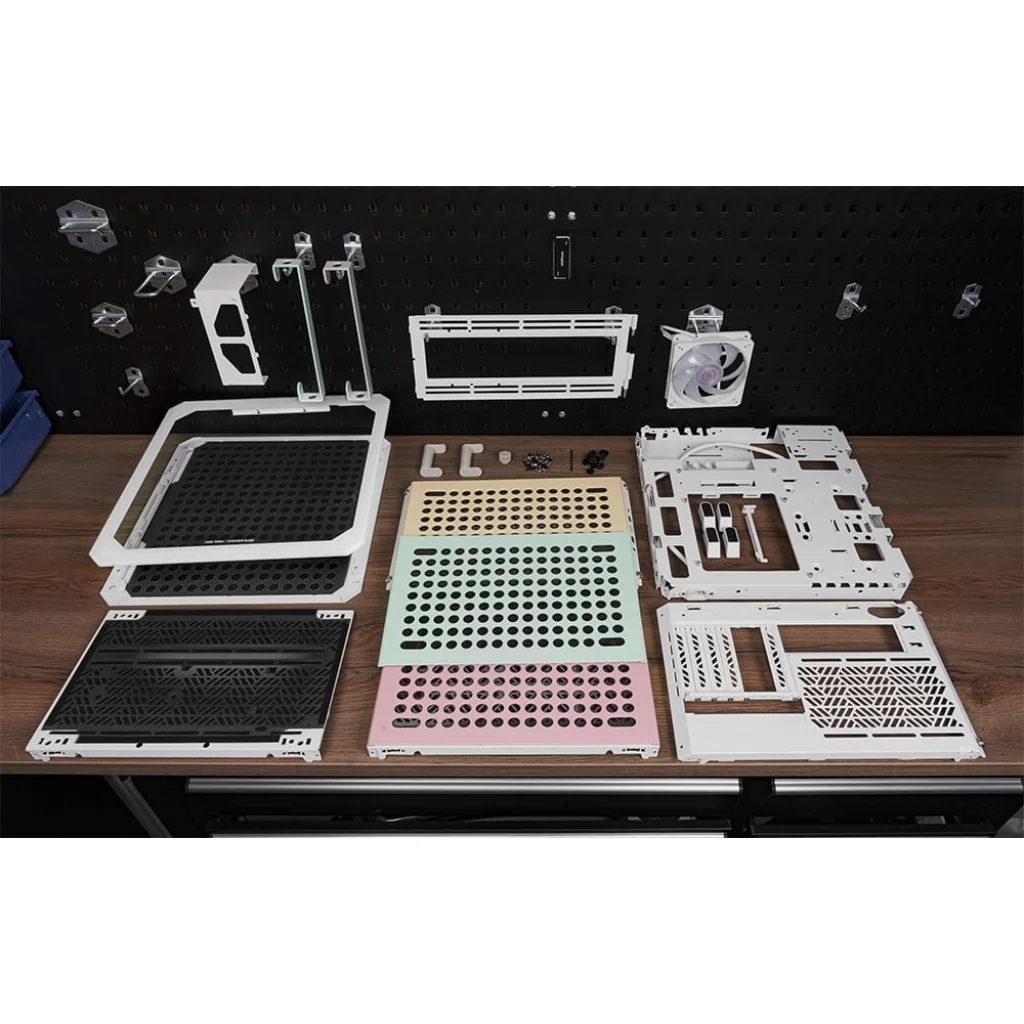A Cooler Master Qube 500 Flatpack egy tágas, mégis kompakt, 33,44 literes számítógépház, amely önösszeszerelő készletként érkezik. Támogatja az E-ATX formátumú alaplapokat, a 365 mm hosszúságú grafikus kártyákat, akár nyolc ventilátort és különböző típusú vízhűtéseket. Moduláris felépítésével is kitűnik, így remek választás lesz azoknak, akik maximális rugalmasságra vágynak. A Macaron Edition készlet emellett különböző színű cserélhető paneleket, egy tartalék konzolt és két kampót tartalmaz a tartozékok számára.