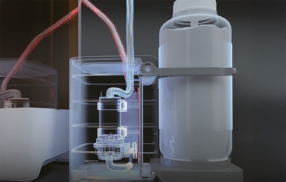 A Halot X1 Combo emellett egy intelligens automatikus adagolóegységet (AFU) is tartalmaz, amely automatizálja a gyantakezelést. Automatikus adagolást és leeresztést biztosít az anyagnak, felismeri annak típusát, felmelegíti azt az optimális hőmérsékletre, és valós idejű előnézetet nyújt a tartályban lévő mennyiségről. Miután egy RFID-címkével ellátott gyantás palackot helyezett a modulba, a nyomtató maga olvassa be annak paramétereit, és letölti a megfelelő profilt a felhőből. Ez kiküszöböli a kézi konfigurálást, és segít elkerülni a hibákat.