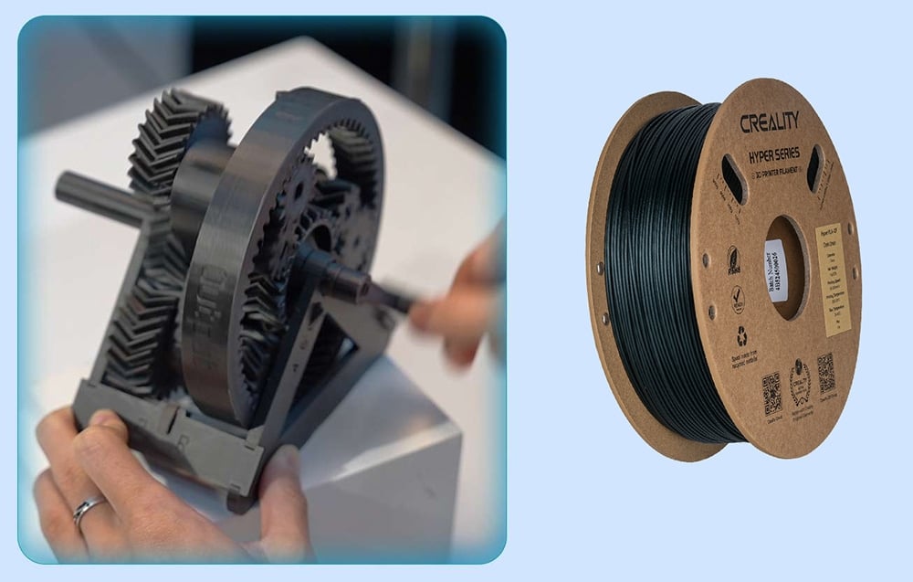 Nagy szilárdság és mechanikai ellenállás A Creality Hyper PLA-CF-et a szilárdság, a fóliatapadás és a könnyűség kiváló egyensúlya jellemzi. A megnövelt merevség és ütésállóság miatt a filament ideális szerkezeti alkatrészek, kötőelemek, mechanikus alkatrészek vagy RC modellek alkatrészeinek készítéséhez.