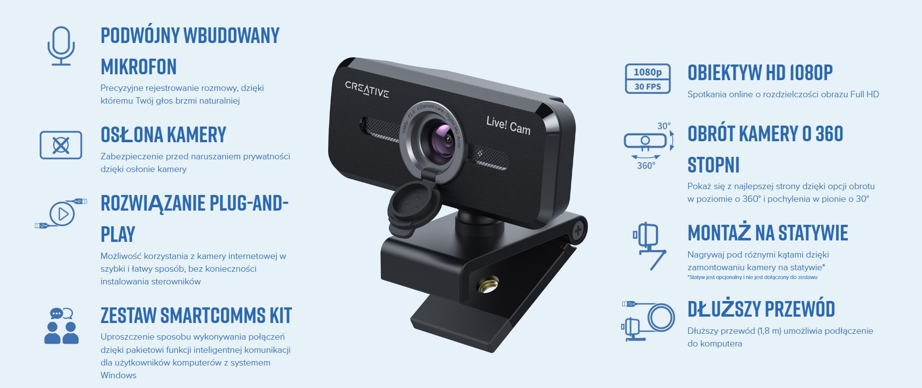 | Package Contents | 1 Creative Live! Cam Sync 1080p V2 camera 1 SmartComms Kit information brochure 1 quick start guide |
