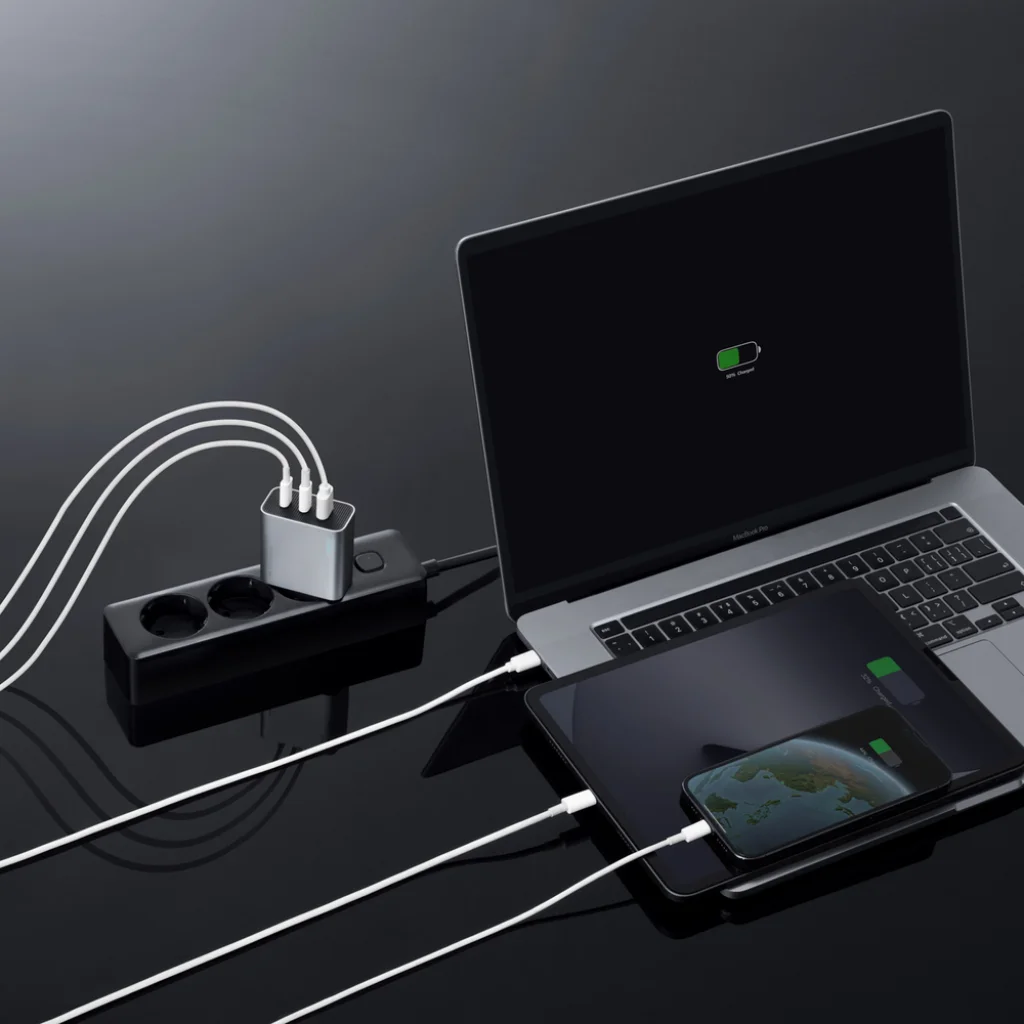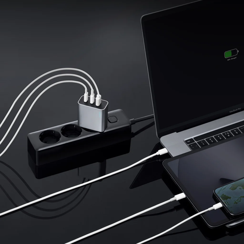 - Akár 65W teljesítmény: Lehetővé teszi a több eszköz hatékony egyidejű töltését.