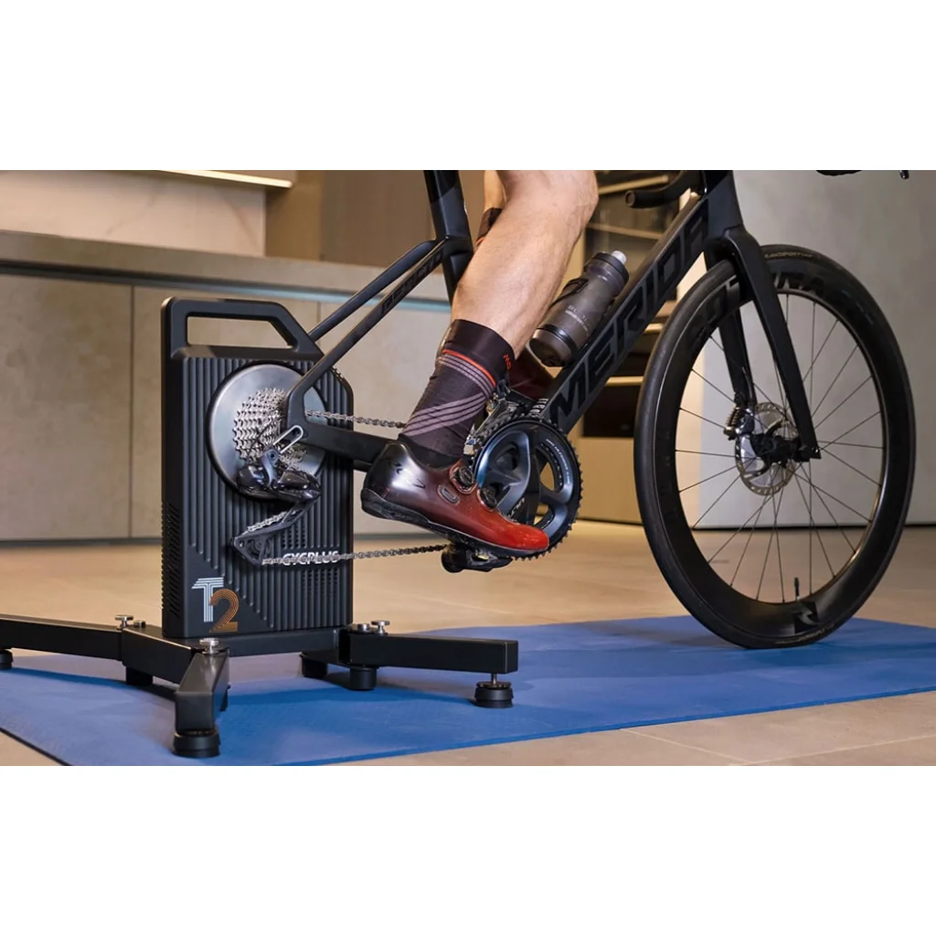 A Cycplus T2 egy intelligens kerékpár tréner, amely valósághű edzésélményt nyújt otthonod kényelmében. A közvetlen meghajtási technológiának, valamint a Bluetooth és ANT+ támogatásnak köszönhetően teljes körű kontrollt szerezhet az edzések felett. A készülék kompakt és összecsukható kialakításának köszönhetően könnyen tárolható, míg az akár 2200 wattos maximális teljesítmény és az akár 17%-os emelkedőszimuláció intenzív és kihívást jelentő edzéseket biztosít.
