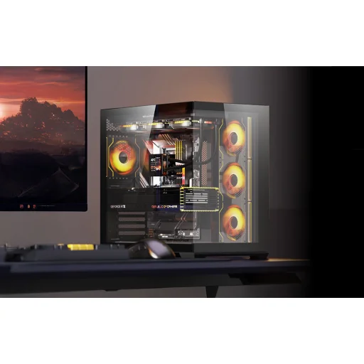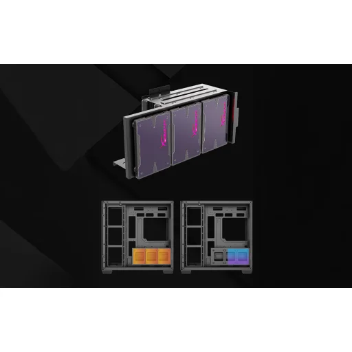 A C280-at úgy tervezték, hogy akár 420 mm hosszú grafikus kártyákat is befogadjon – a GPU-t vízszintesen vagy függőlegesen is felszerelheti. Így könnyedén elrendezheti a ház belsejében lévő teret az elképzeléseinek megfelelően! A tágas belső tér lehetővé teszi akár 155 mm magas CPU-hűtő és E-ATX, ATX, M-ATX és ITX alaplapok beszerelését is. Az ATX és M-ATX szabványok esetében a hátsó csatlakozások is támogatottak, ami megkönnyíti a kábelek elrendezését és javítja az esztétikát. Emellett 7 bővítőkártya-hely és egy multifunkcionális konzol is rendelkezésre áll 3 SSD vagy 2 HDD felszereléséhez.