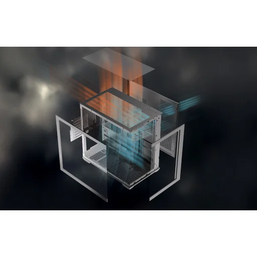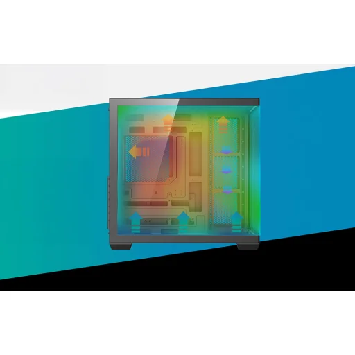 A C280 modell 270°-os panorámakialakítást használ, függőleges sarokprofil nélkül, így a ház belseje mindkét oldalról teljes mértékben látható. Az üveg oldalsó panelek lehetővé teszik például a vízhűtés, a képernyő vagy az RGB háttérvilágítású ventilátorok bemutatását. Ez a megoldás ideálisvá teszi a házat bemutató és játékkonfigurációkhoz. Hozzon létre egyedi konfigurációt, és emelje ki munkaállomása karakterét!