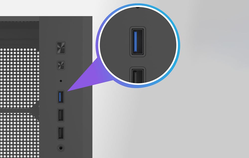 Csatlakozók és teljes funkcionalitás A ház előlapján USB 3.0 portokat és két USB 2.0 csatlakozót talál a gyors adatátvitelhez és a perifériás eszközök kényelmes csatlakoztatásához. Ennek eredményeképpen a DB460M egy játékkészlet és egy nagy teljesítményű munkaállomás alapjaként egyaránt bizonyítani fog.
