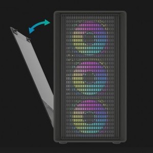 Minimalista kialakítás A DB460M ház edzett üvegből készült kagylós oldallapot tartalmaz - amely szerszámok nélkül nyitható, nagymértékben felgyorsítva az alkatrészekhez való hozzáférést és egyszerűsítve a számítógép frissítését. A hálós előlap kiemeli a ház gaming jellegét, mi több, maximális légáramlást biztosít, támogatva a hatékony hűtést intenzív munka közben is. Ennek eredményeképpen biztos lehet benne, hogy a számítógép belseje további védelemben részesül.