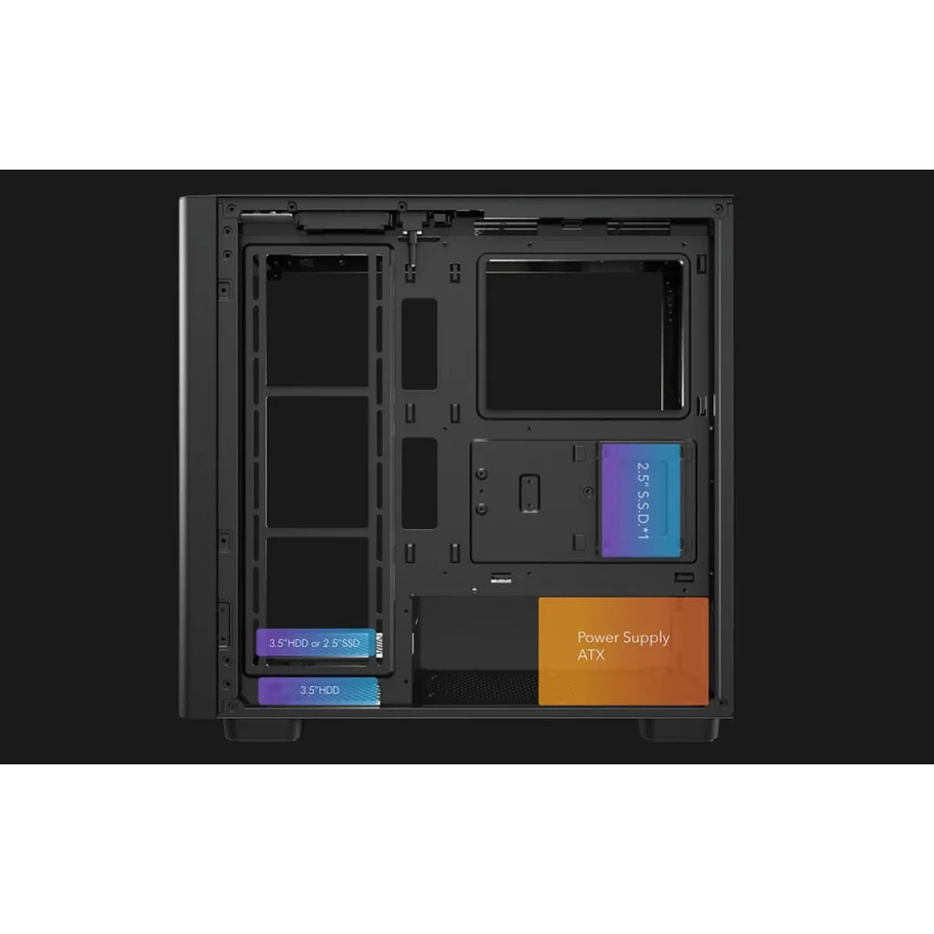 A DarkFlash DS900G egy középső torony számítógépház, amely széleskörű funkcionalitást kínál az igényes felhasználók számára. Támogatja az ATX, Micro-ATX és ITX formátumú alaplapokat. A belső térben akár 425 mm hosszú grafikus kártyák és 170 mm magas CPU-hűtők is elférnek. Az alkatrészek könnyen hozzáférhetők és bővíthetők. A DS900G teljes körű támogatást nyújt a különböző hűtőrendszerekhez, így könnyedén kezelheti az igényes játék- vagy munkarendszereket is.